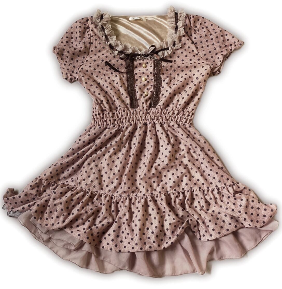 姫カジ 森ガール レース リボン 水玉 ガーリー ワンピ