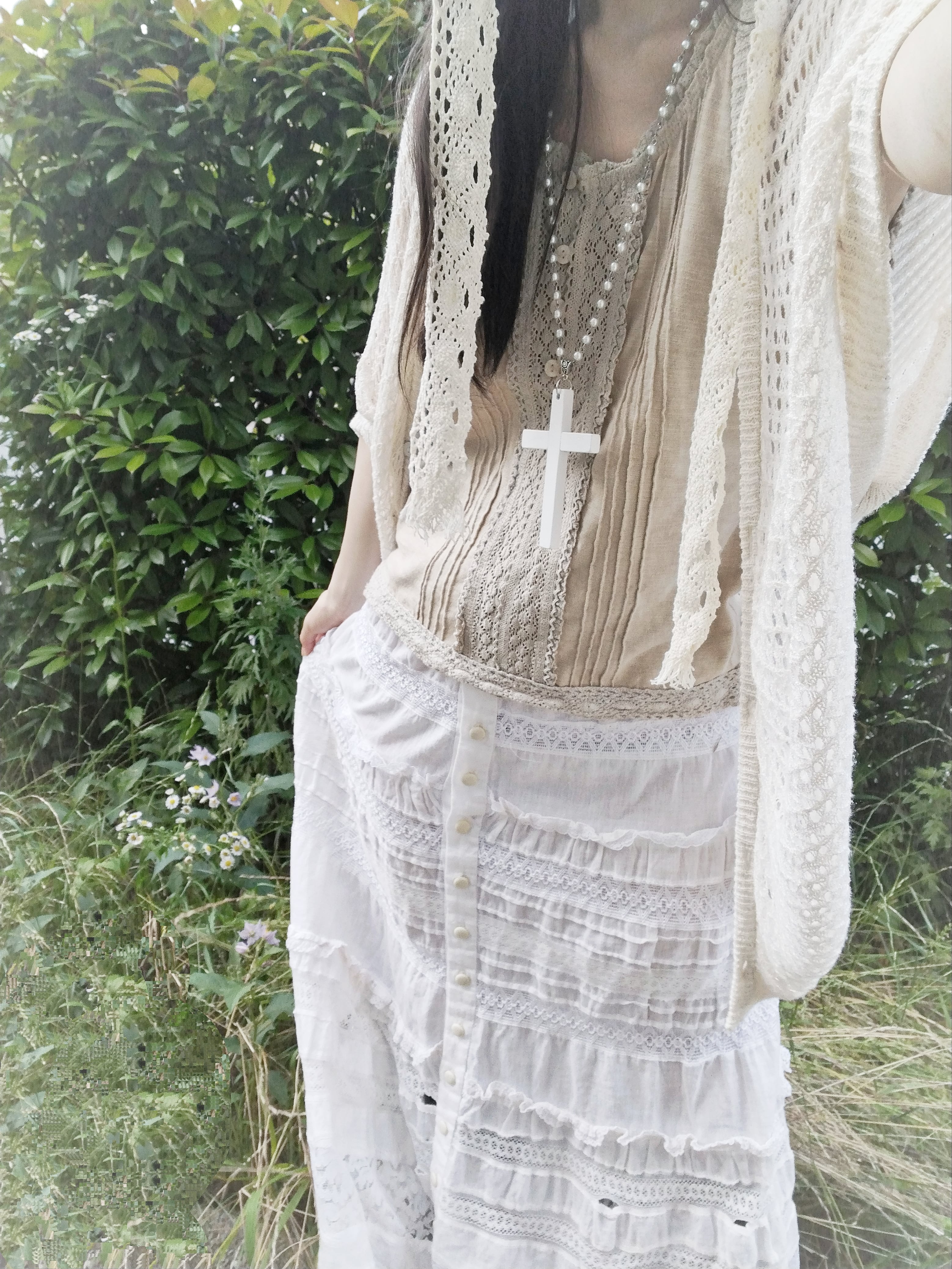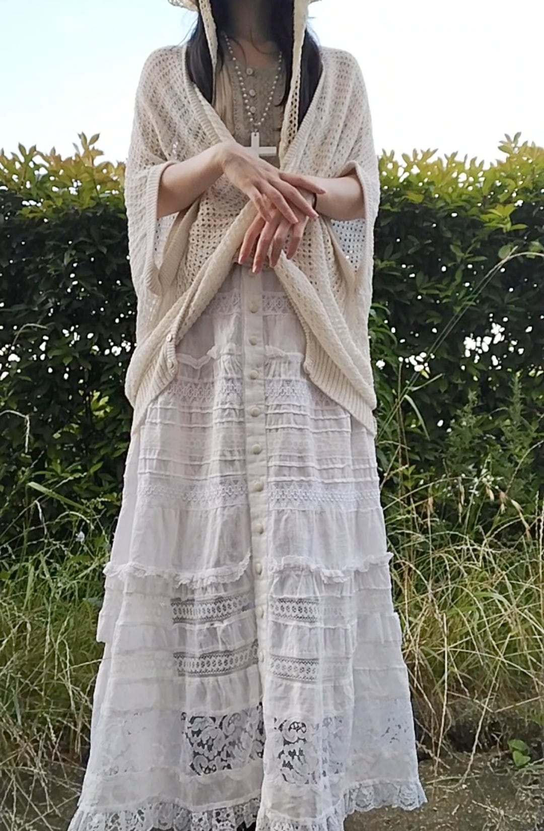 独特なシルエットが特徴の森ガール系トップスです。鍵編みデザインが印象的で、涼し気なのでこれからの季節にぴったりです!