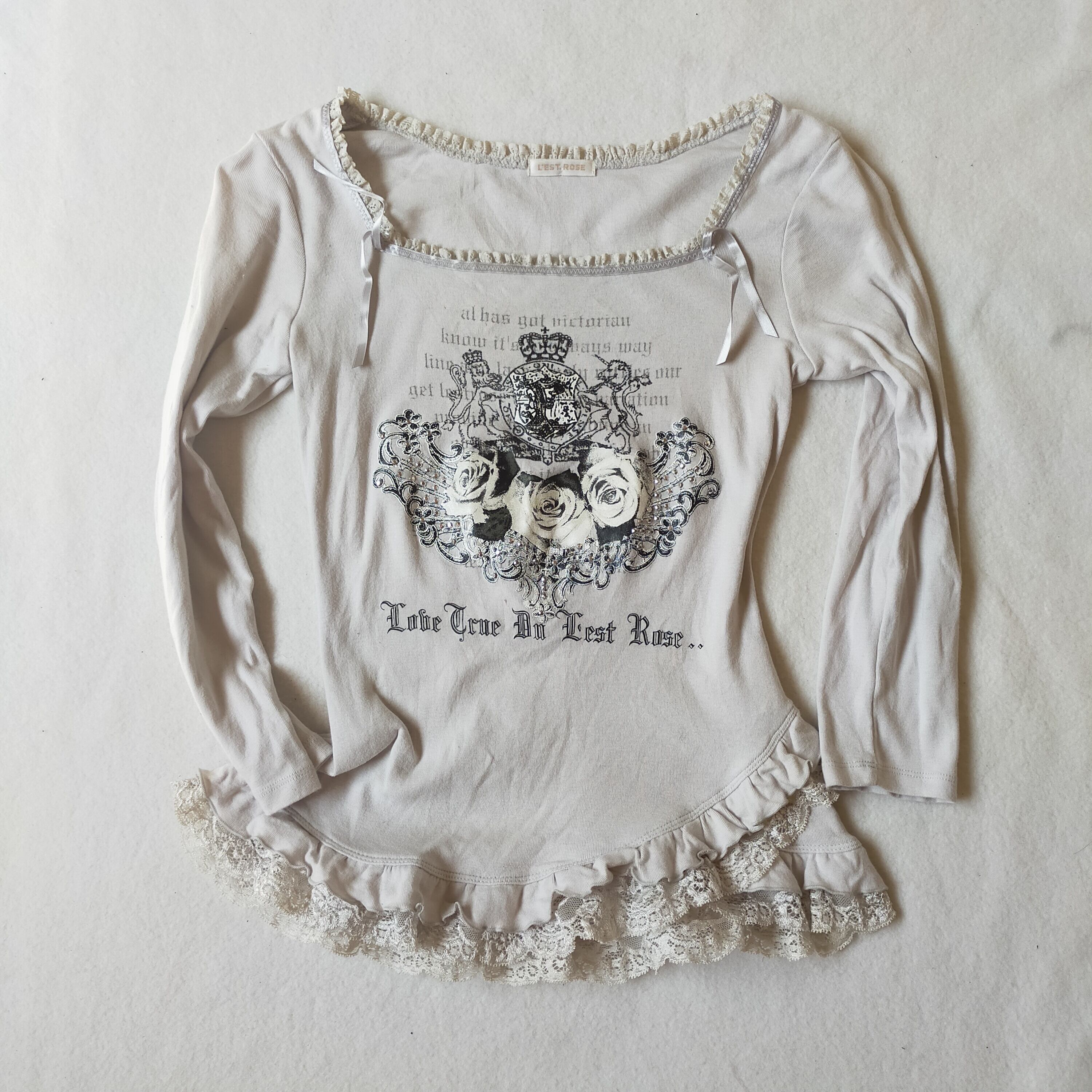 レア 希少 レストローズ 英字 薔薇 フリルカットソー